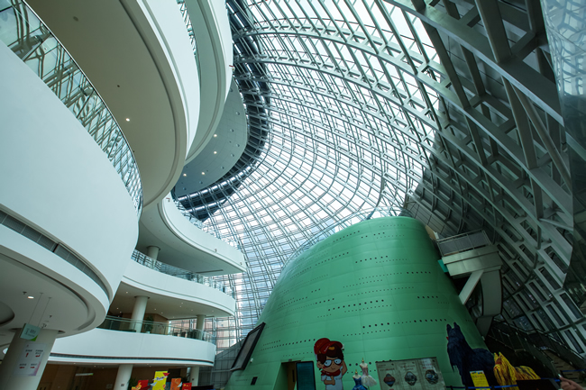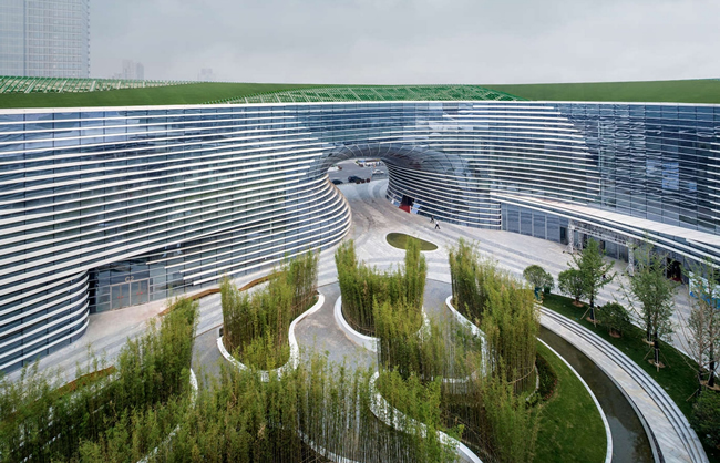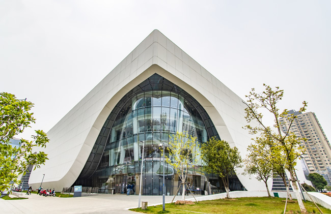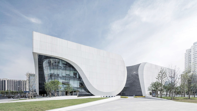 苏州第二图书馆设计灵感泉源于一摞旋转叠放的纸张和书籍,以及散落在其旁的书签。从空中俯瞰这座现代感十足的修建,依林傍水,情形优雅,以天窗式造型和旋转的外立面,与蓝天碧水一起组玉成新的苏州都会文化地标。