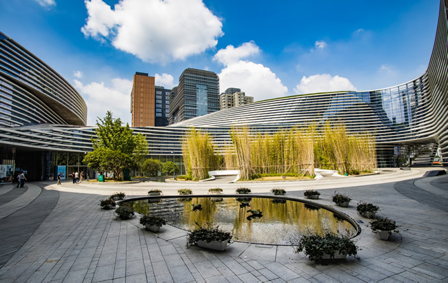 东吴文化中心设计造型宛若饱满的水滴从太湖石中心滑落,凸显灵秀清雅的吴中意境,诠释着生生不息、滋润万物的文化秘闻,该项目旨在构建协调、亲善的都会综合性文化空间,更为打造一张崭新的“都会手刺”。